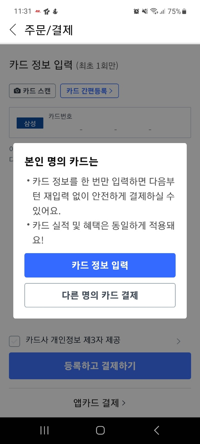 2. 다른 명의 카드 선택해서 결제 진행반응형'생활' 카테고리의 다른 글